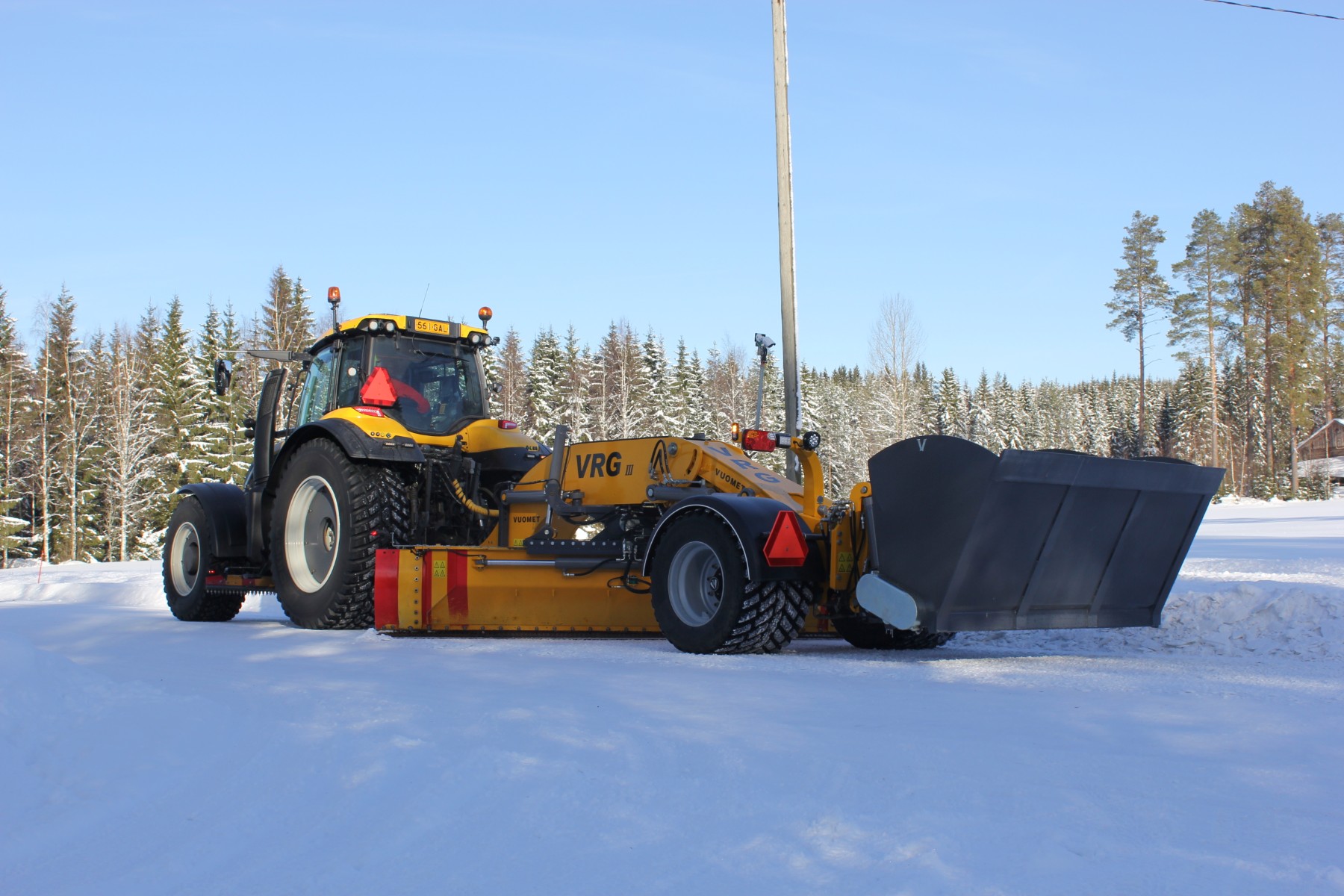 Patentoidun VRG-tiehöylän massiivinen rakenne ja monipuoliset ominaisuudet mahdollistavat tehokkaan ja tuloksellisen tienhoitourakoinnin ympäri vuoden. Kun höylä varustetaan CAT2 3-pistenostolaitteella, voi sen perään liittää erilaisia hyödyllisiä lisälaitteita, kuten erittäin suuren massankäsittelykyvyn omaavan karheenlevittimen. Talvella laitteen perään voi liittää vallileikkuri-sivuauran tai hiekoittimen ja kesällä jyrsimen. Niveltyvän runkonsa ansiosta VRG-tiehöylä on ketterä liikkeissään, joten sillä onnistuvat sujuvasti niin tiukat käännökset kuin peruutuksetkin. Myös jyrkkien mäkien ja notkelmien ajo onnistuu ongelmitta.
